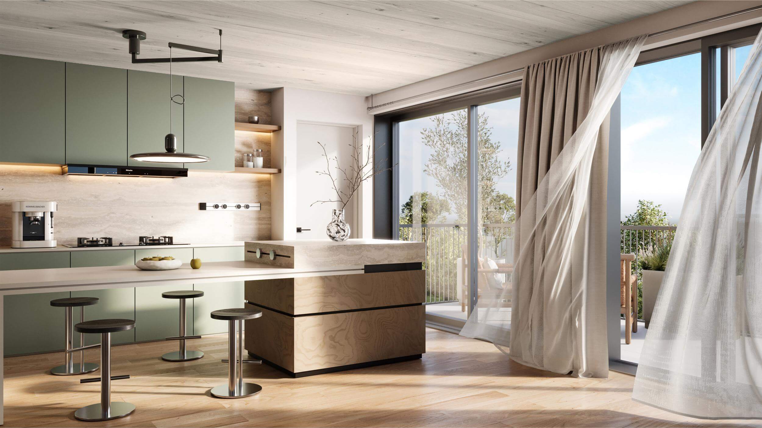 Chaque appartement a été pensé pour offrir des volumes lumineux et chaleureux, grâce à de larges ouvertures favorisant la lumière naturelle. Tous les logements bénéficient d’un espace extérieur privatif :